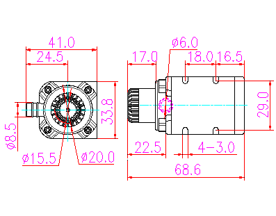 | 41 | 34 | 69 | IP68 | φ20 | φ15.5 | φ8.5 | φ6 | ||